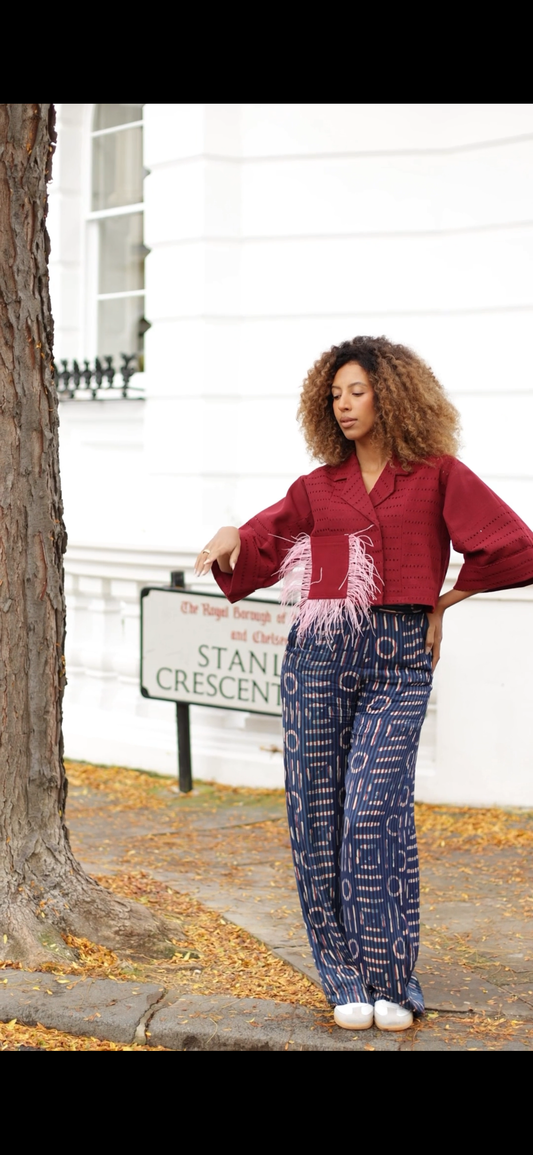 Babayo Asooke Crop Jacket with side feathered pocket